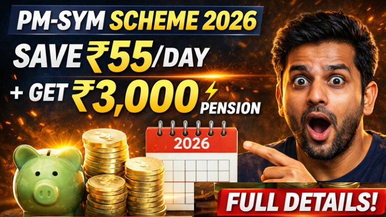 ದಿನಕ್ಕೆ ₹55 ಉಳಿಸಿ ₹3,000 ಪಿಂಚಣಿ ಪಡೆಯಿರಿ! PM-SYM Scheme 2026 ಸಂಪೂರ್ಣ ಮಾಹಿತಿ