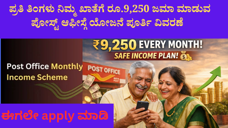 ₹15 ಲಕ್ಷ ಹೂಡಿಕೆ ಮಾಡಿದರೆ ಪ್ರತಿ ತಿಂಗಳು ₹9,250 ಗ್ಯಾರಂಟಿ ಆದಾಯ! ಪೋಸ್ಟ್ ಆಫೀಸ್ POMIS ಯೋಜನೆ ಸಂಪೂರ್ಣ ವಿವರ..! ಇಂದಿನ ಆರ್ಥಿಕ ಪರಿಸ್ಥಿತಿಯಲ್ಲಿ ಜನರು ಹೆಚ್ಚು …