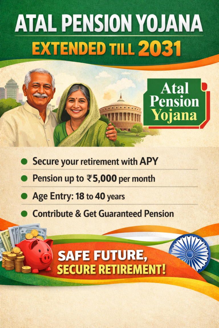 ಕೇಂದ್ರ ಸರ್ಕಾರದಿಂದ ಜನಸಾಮಾನ್ಯರಿಗೆ ಗುಡ್ ನ್ಯೂಸ್: ಅಟಲ್ ಪಿಂಚಣಿ ಯೋಜನೆ 2031ರವರೆಗೆ ವಿಸ್ತರಣೆ! ತಿಂಗಳಿಗೆ ₹5,000 ಫಿಕ್ಸ್ಡ್ ಪಿಂಚಣಿ ಪಡೆಯುವುದು ಹೇಗೆ? ಇಲ್ಲಿದೆ ಸಂಪೂರ್ಣ ಮಾಹಿತಿ. ಪೀಠಿಕೆ: …