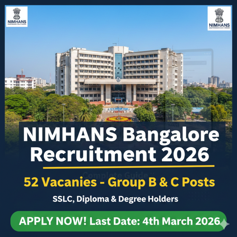 ಬೆಂಗಳೂರು NIMHANS ನೇಮಕಾತಿ 2026: ಉದ್ಯೋಗಾಕಾಂಕ್ಷಿಗಳಿಗೆ ಸುವರ್ಣಾವಕಾಶ! ಸಂಪೂರ್ಣ ವಿವರ ಇಲ್ಲಿದೆ. ಬೆಂಗಳೂರು ನಗರದಲ್ಲಿ ವಾಸಿಸುತ್ತಾ ಪ್ರತಿಷ್ಠಿತ ಸರ್ಕಾರಿ ಸಂಸ್ಥೆಯಲ್ಲಿ ಕೆಲಸ ಮಾಡಬೇಕು ಎಂಬುದು ಅನೇಕರ ಕನಸು. …