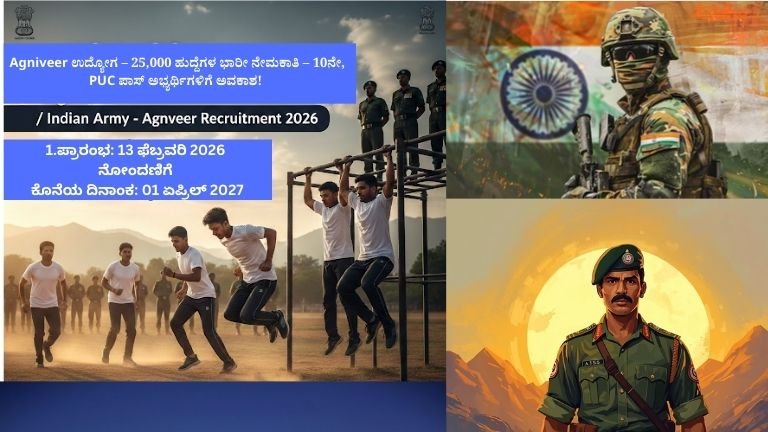 ಭಾರತೀಯ ಸೇನೆಯಲ್ಲಿ ಅಗ್ನಿವೀರ್ ಬೃಹತ್ ನೇಮಕಾತಿ 2026: 25,000 ಹುದ್ದೆಗಳಿಗೆ 10th, PUC ಪಾಸಾದವರಿಂದ ಅರ್ಜಿ ಆಹ್ವಾನ – ಸಂಪೂರ್ಣ ಮಾಹಿತಿ ಇಲ್ಲಿದೆ! ಪೀಠಿಕೆ: ದೇಶದ ಗಡಿಕಾಯುವ …