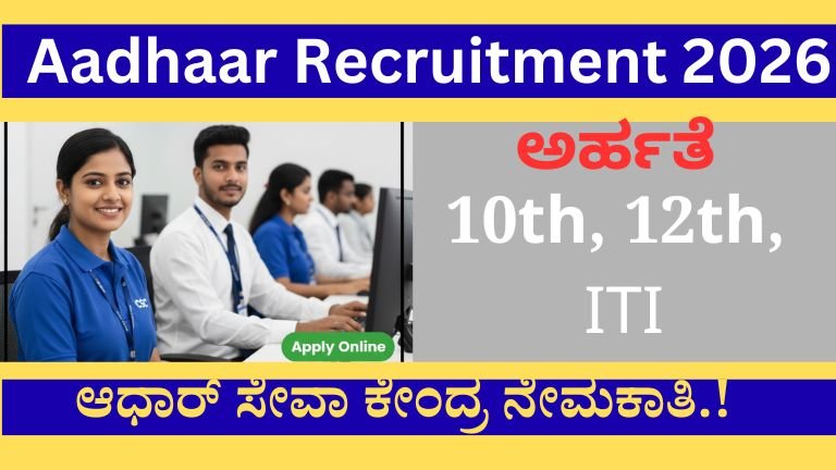 ಆಧಾರ್ ಸೇವಾ ಕೇಂದ್ರ ನೇಮಕಾತಿ 2026: 10th, ಪಿಯುಸಿ ಪಾಸಾದವರಿಗೆ ಬೃಹತ್ ಉದ್ಯೋಗಾವಕಾಶ! ಇಂದೇ ಅರ್ಜಿ ಸಲ್ಲಿಸಿ. Aadhaar Recruitment 2026: ನೀವು ಉದ್ಯೋಗಕ್ಕಾಗಿ ಹುಡುಕುತ್ತಿದ್ದೀರಾ? ಸರ್ಕಾರಿ …