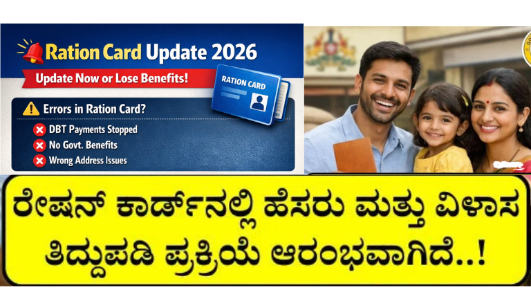 Ration Card Update 2026: ಇನ್ನು ತಕ್ಷಣ ತಿದ್ದುಪಡಿ ಮಾಡಿ – ಹೆಸರು, ವಿಳಾಸ ತಪ್ಪಿದ್ದರೆ ಸೌಲಭ್ಯಗಳು ನಿಲ್ಲಬಹುದು..! ಭಾರತದಲ್ಲಿ Ration Card ಒಂದು ಸಾಮಾನ್ಯ ದಾಖಲೆ …