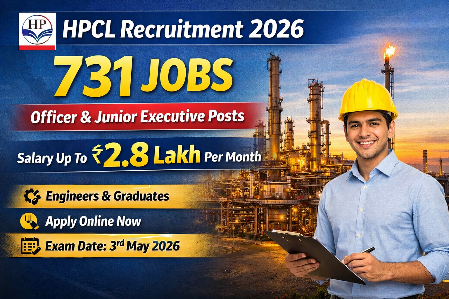 HPCL Recruitment 2026: 731 ಅಧಿಕಾರಿ ಮತ್ತು ಜೂನಿಯರ್ ಎಕ್ಸಿಕ್ಯೂಟಿವ್ ಹುದ್ದೆಗಳ ನೇಮಕಾತಿ – ವೇತನ ₹30,000 ರಿಂದ ₹2.8 ಲಕ್ಷ ಸಂಪೂರ್ಣ ಮಾಹಿತಿ