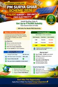 🌞 PM Surya Ghar Scheme 2026: ಮನೆಗೆ ಸೋಲಾರ್ ಹಾಕಿದ್ರೆ ₹78,000 ಸಬ್ಸಿಡಿ + 300 ಯೂನಿಟ್ ಫ್ರೀ ವಿದ್ಯುತ್!